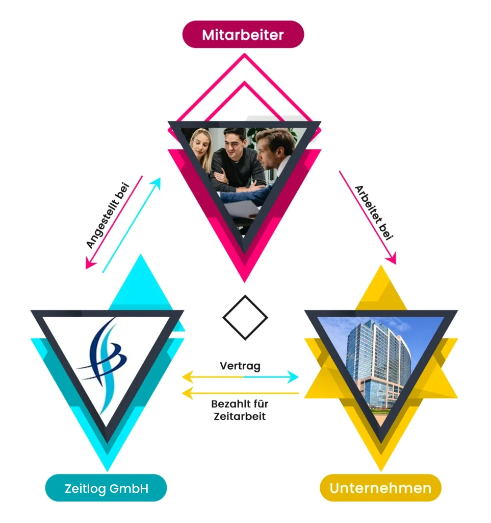 Bei Zeitarbeit wird der Arbeitnehmer von einem Verleiher an einen Entleiher überlassen, bleibt jedoch dauerhaft beim Verleiher angestellt. Ein Zeitvertrag oder eine Befristung ist hingegen ein direktes Arbeitsverhältnis zwischen einem Arbeitnehmer und einem Arbeitgeber für einen bestimmten Zeitraum.